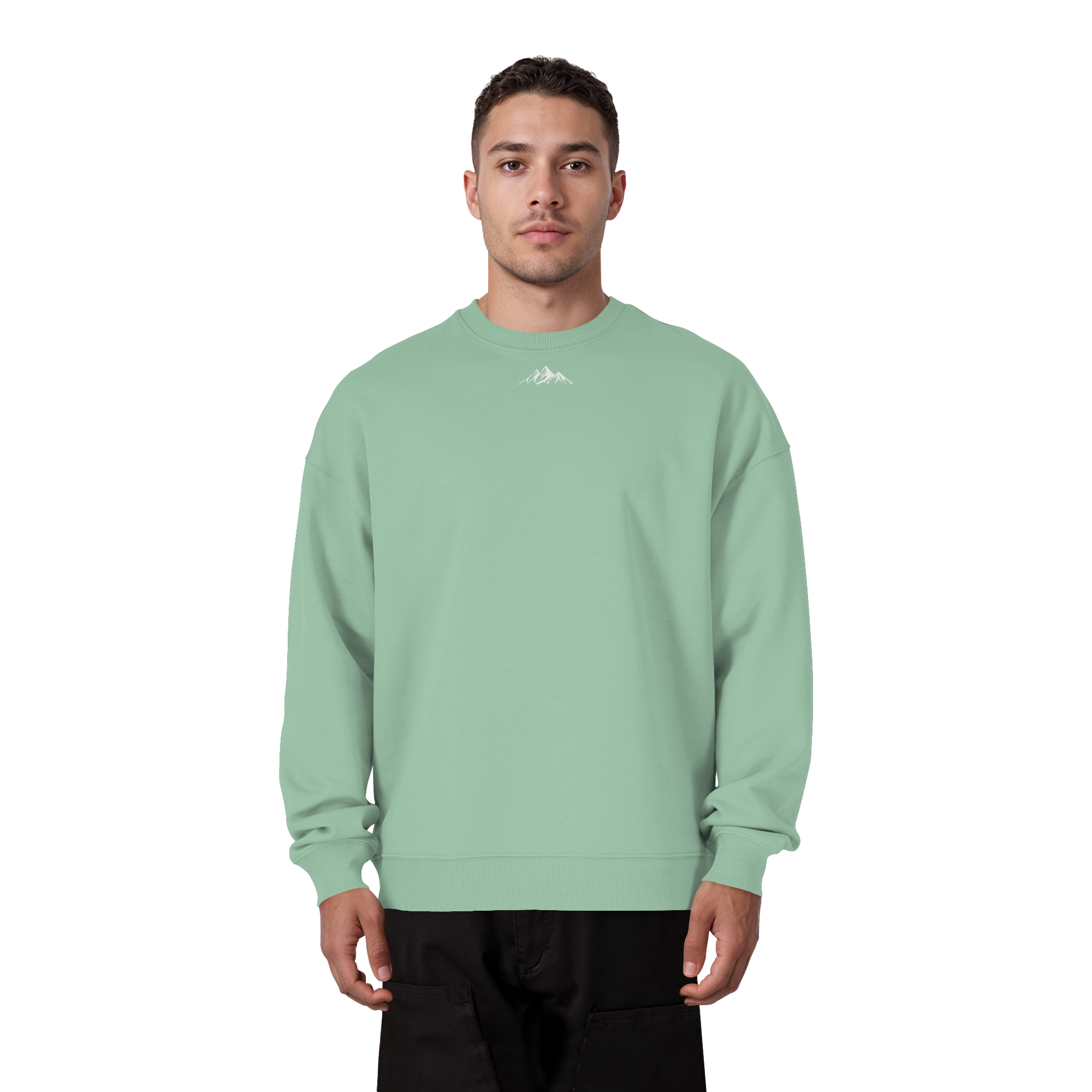 - Ein schwerer, oversized Crewneck – gemacht für kalte Bergmorgen, späte Nächte in der Stadt und alles dazwischen.